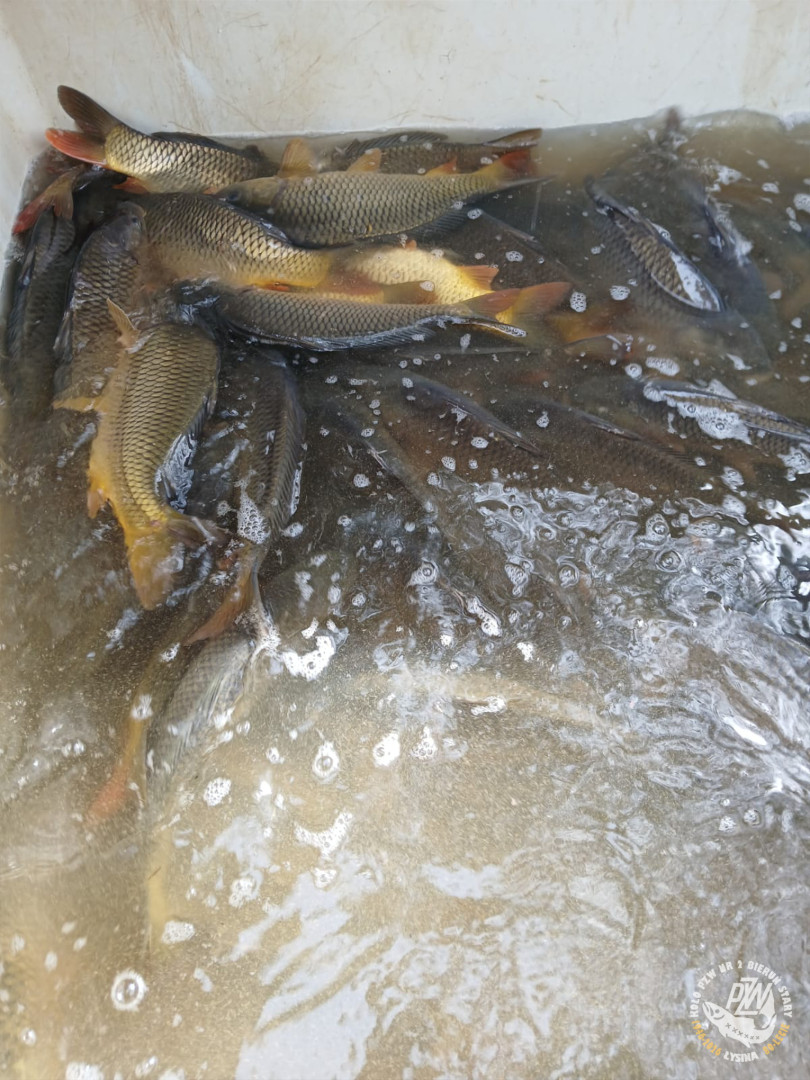 Dnia 14.05.2025r. zbiornik Łysina 509 został zarybiony małym węgorzem o łącznej masie 15kg.
